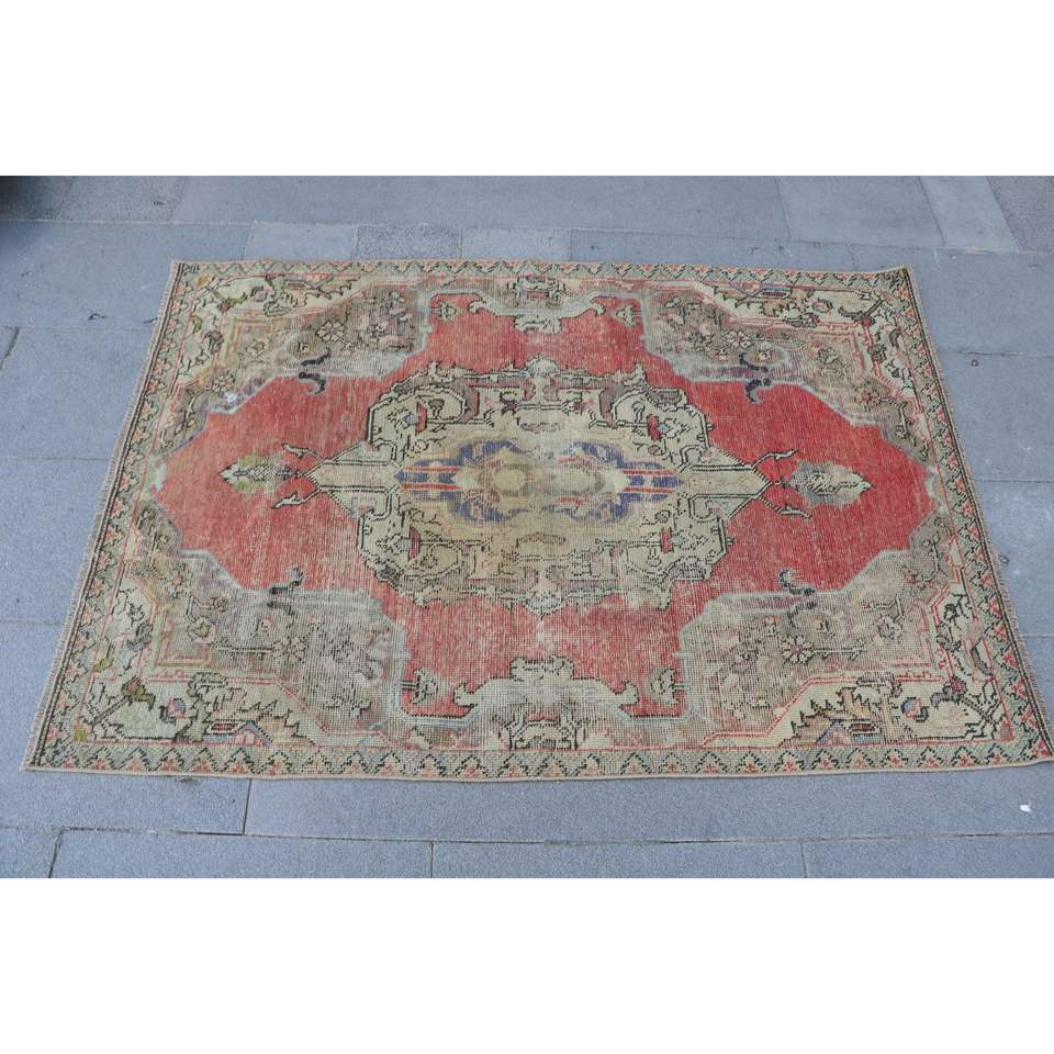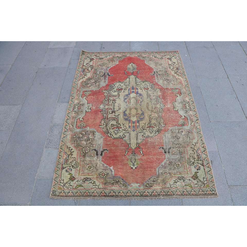 Tapis turc 3,3 x 4,9 pieds, tapis d'appoint vintage, tapis camouflage rouge et bleu