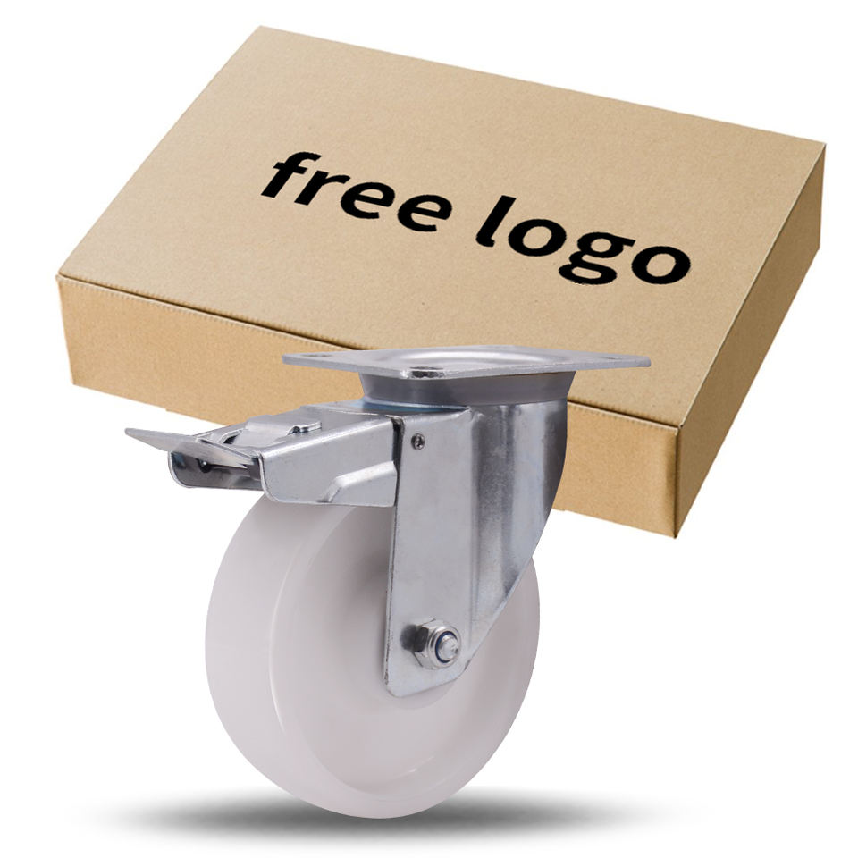 Roulettes industrielles modernes robustes en nylon blanc, avec frein pivotant, sans trace, de 3, 4, 5, 6 et 8 pouces, avec supports