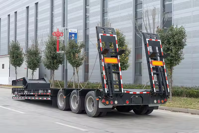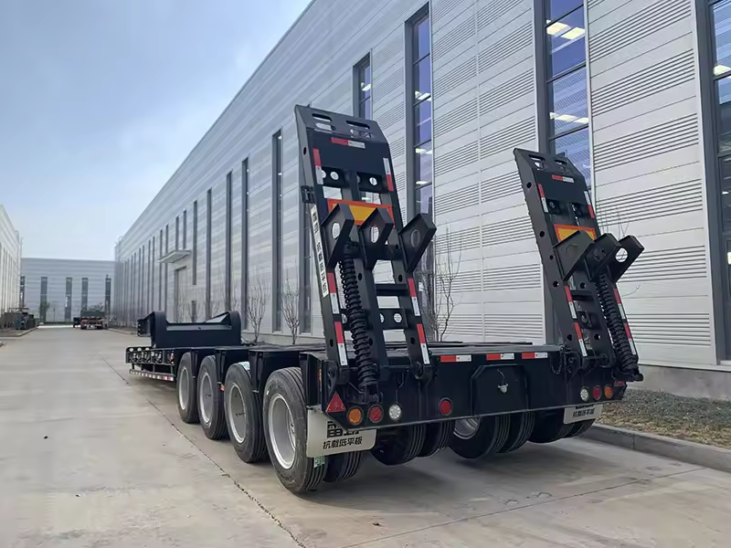 Semi-remorque surbaissée à col de cygne hydraulique 3, 4 ou 5 essieux, capacité 1-2 tonnes, plateau 12,5x2,5x1,5m, Fengniao