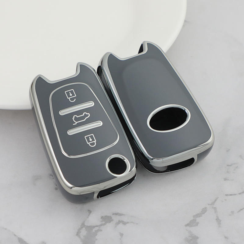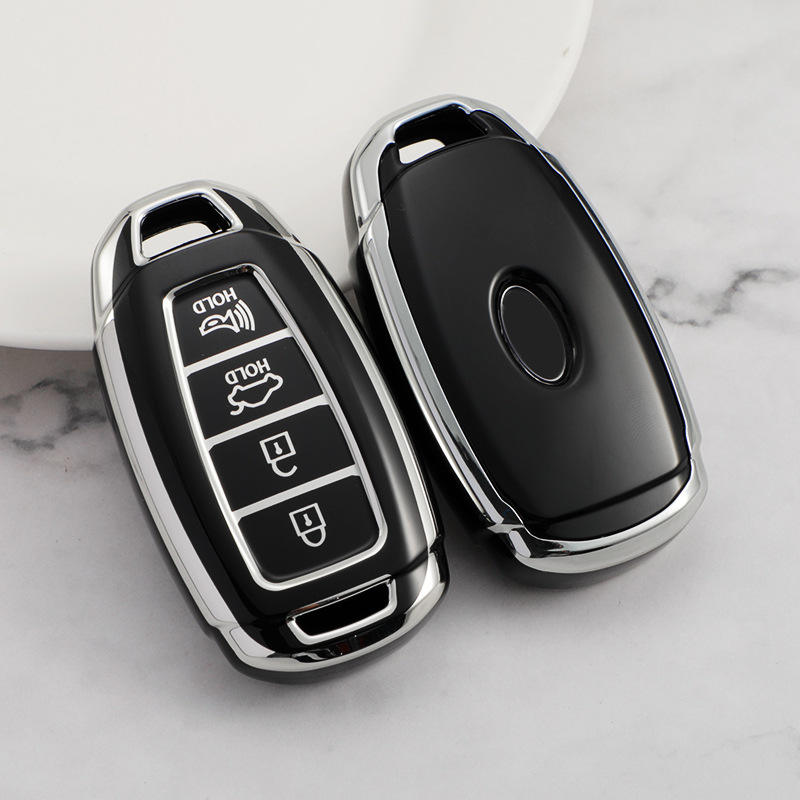 Housse de clé en TPU à 3/4/5 boutons et garniture argentée pour Hyundai Tucson L/Sonata-Étui de protection anti-rayures avec crochet