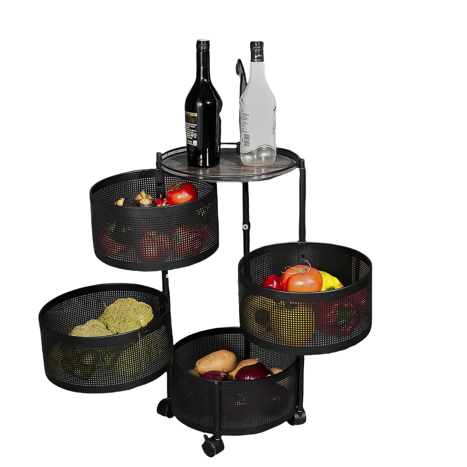 Chariot Roulant Rond Multifonctionnel à 3/4/5 Niveaux Paniers de Rangement Organisateur de Cuisine Étagère Rotative Stockage Métal Fruits Légumes Ra