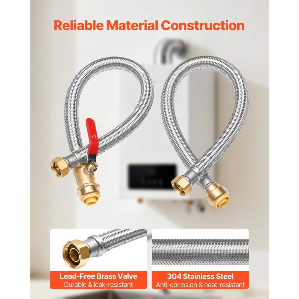 Kit de raccordement pour chauffe-eau en acier inoxydable avec vanne à bille 3/4'' FIP x 3/4'' PTC, vanne à raccord rapide et flexibles de plomberie souples pour