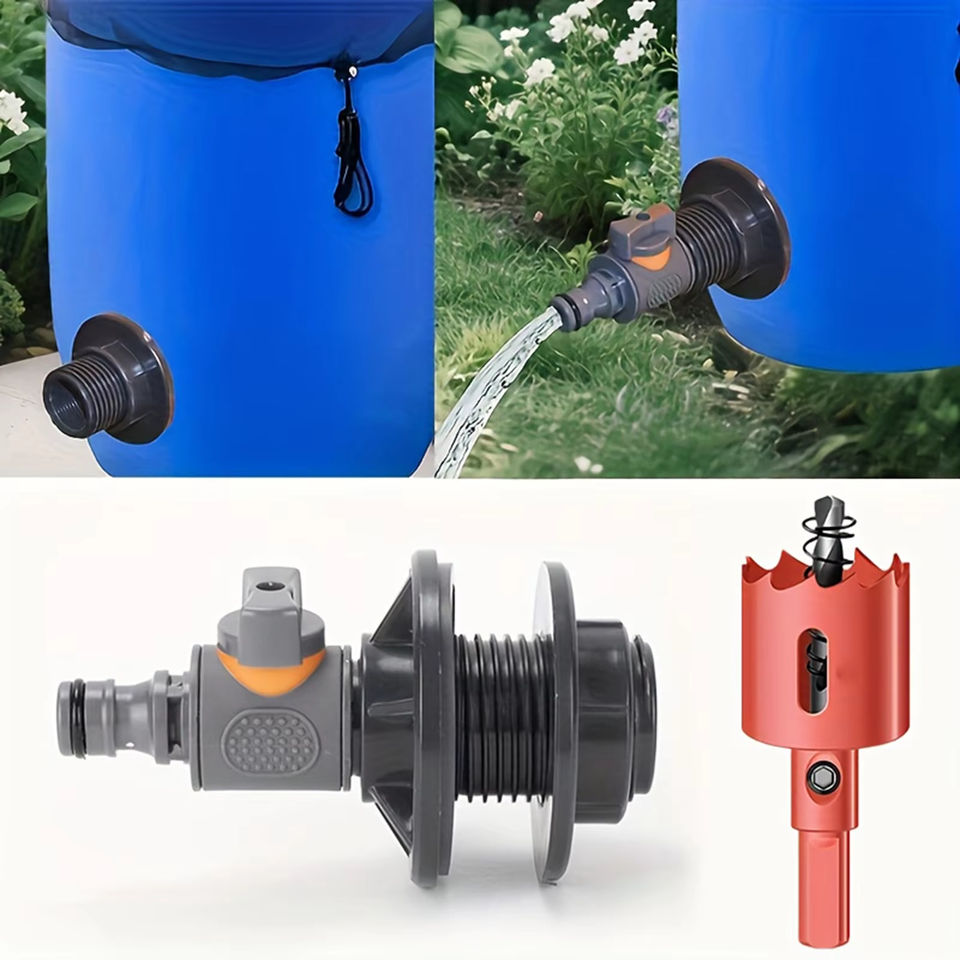 Kit combiné d'ouvre-prise fileté en plastique 3/4'' pour arrosage de jardin, robinet de seau d'eau de pluie et valve à embout