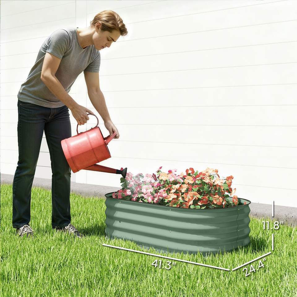 Kit de jardinière surélevée galvanisée 3,4 x 2 x 1 m, bac à plantes en métal avec bordure de sécurité, arrangements saisonniers extérieurs, vert