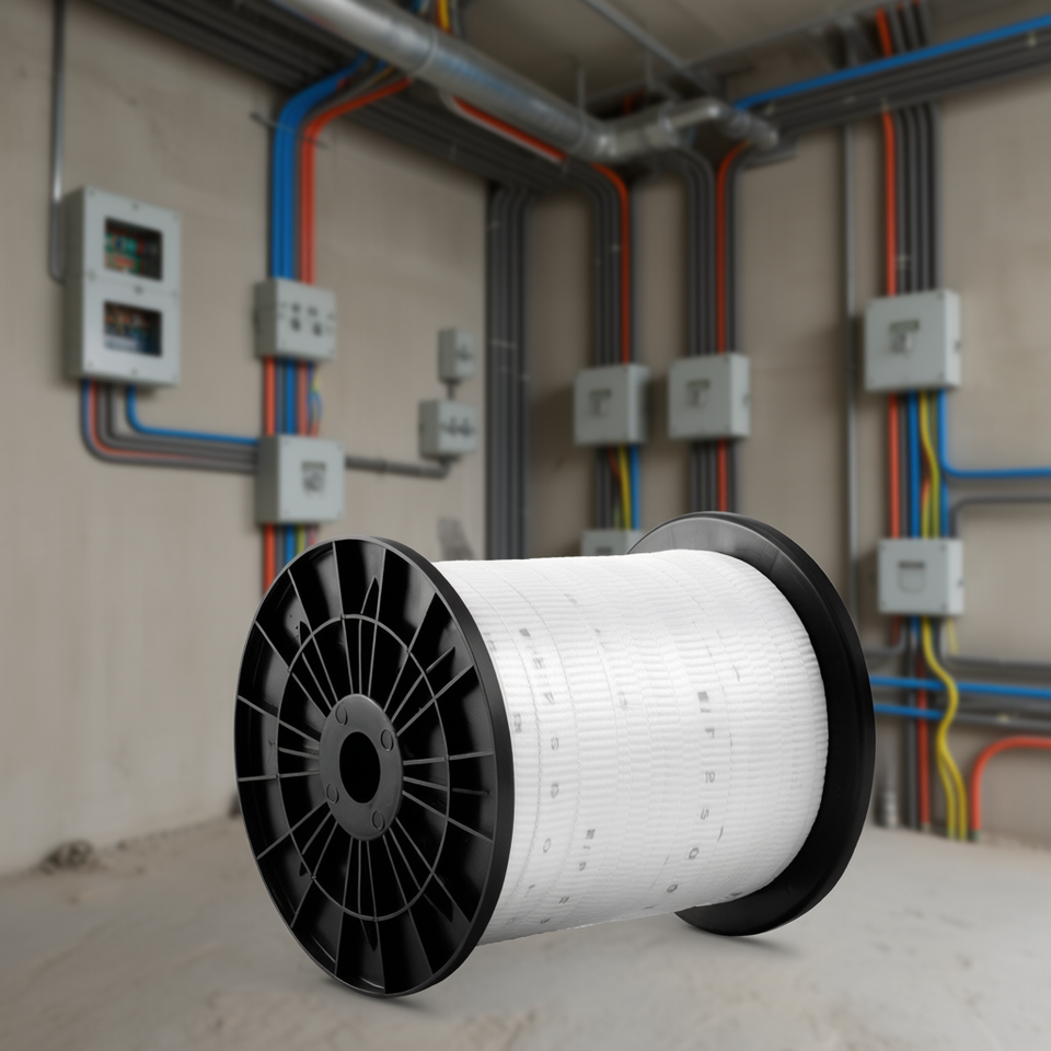 Cordon plat blanc en polyester de 3/4 po x 318 pi, capacité de traction de 2500 lb pour la protection des câbles électriques et des conduites