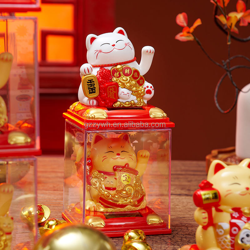 3.5 pouces solaire en plastique chat porte-bonheur pour chinois noël nouvel an Feng Shui maison bureau voiture décoration ouverture pendaison de crémaillère