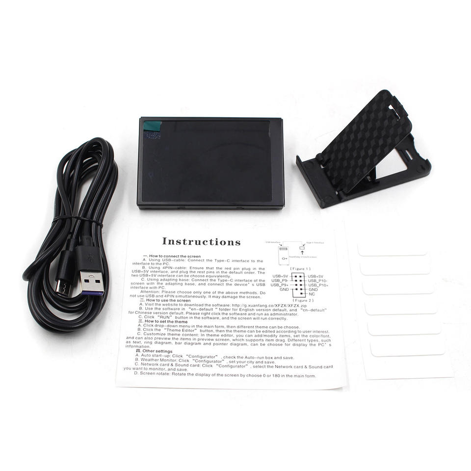 Écran secondaire USB Type-C de 3,5 pouces, 3,5'' 320x480 IPS Full View, mini PC, moniteur de température CPU GPU RAM HDD AIDA64