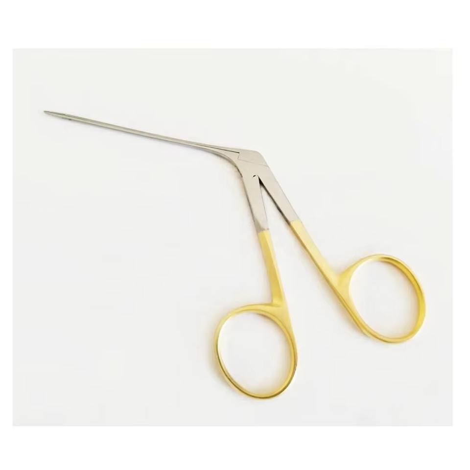Pinces micro-alligator auriculaires de 3,5 po avec manche doré, mâchoires dentelées de 1,45 mm, instruments chirurgicaux ORL pour sinus, à commande manuelle