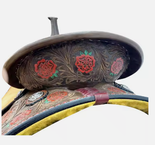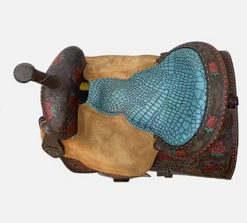 Selle de course anglaise tressée en peau brute 3.5 Selle occidentale en cuir véritable fabriquée à la main avec un design multiple