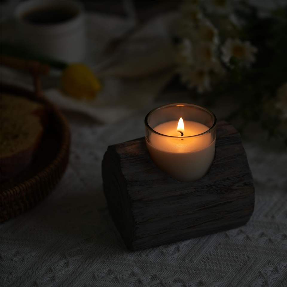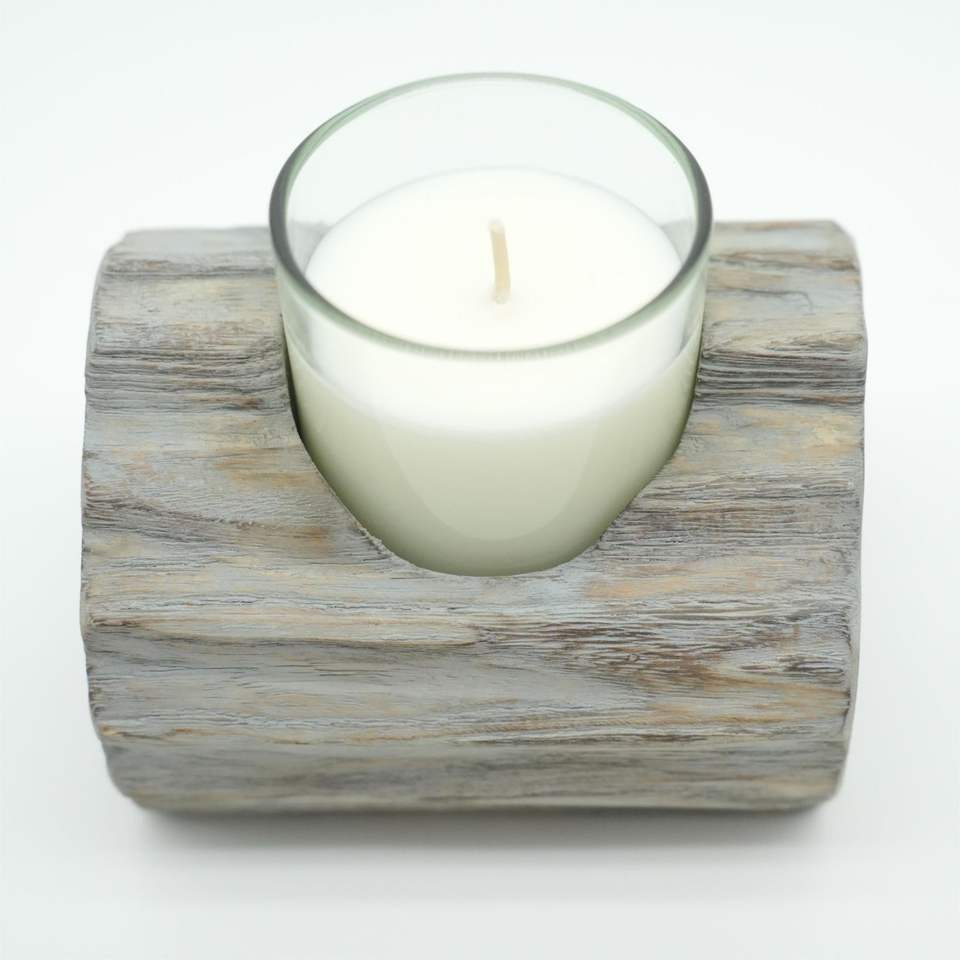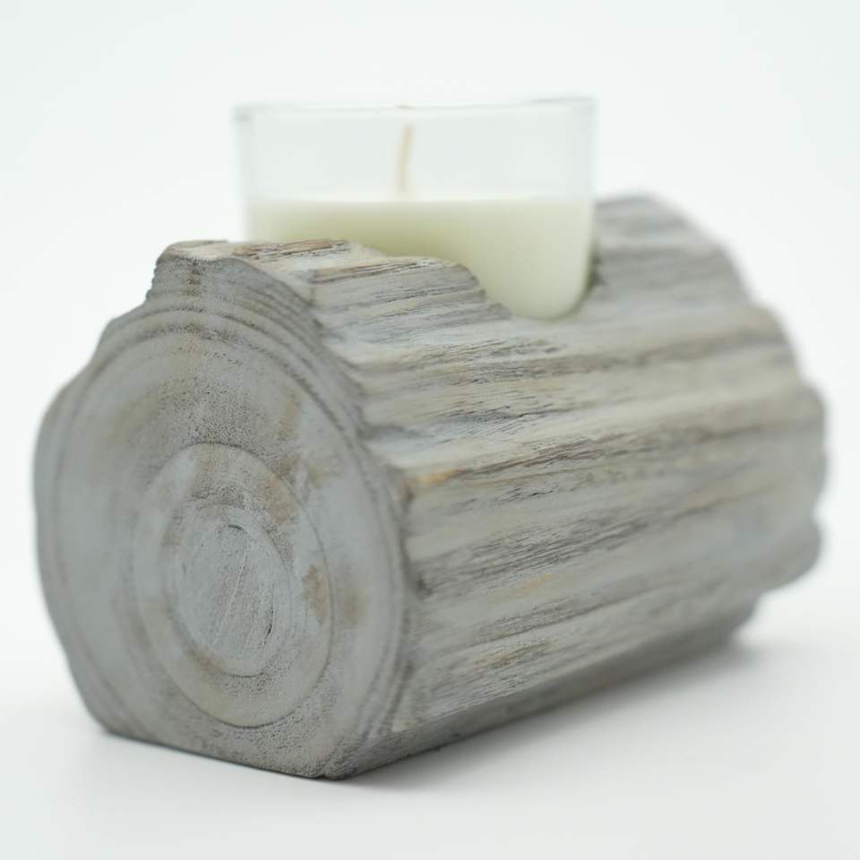 Porte-bougie rustique en bois gris délavé de 3,54'' à compartiment unique pour la décoration intérieure, lanternes et pots à bougies