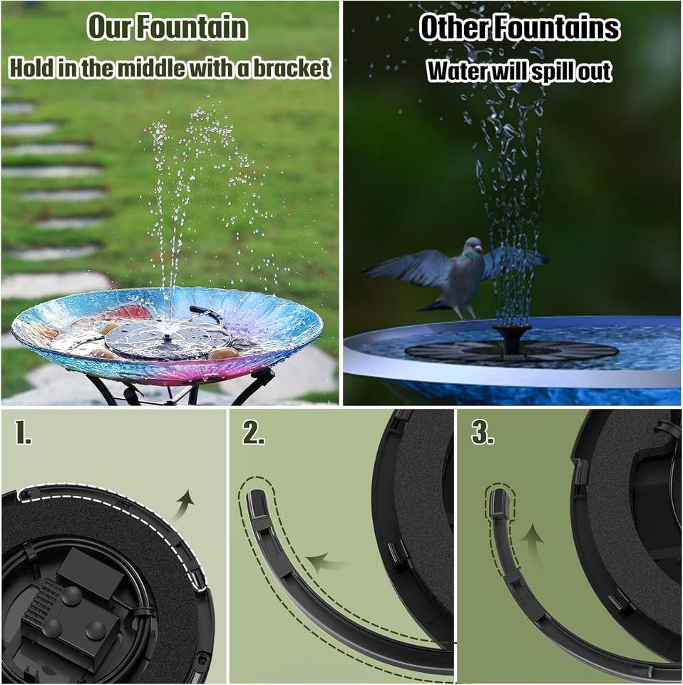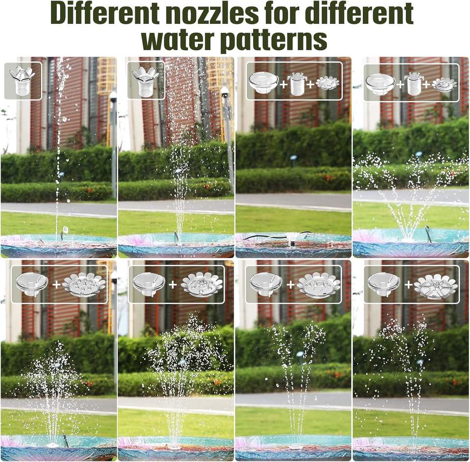 Pompe à eau solaire 3,5 W, kit de bricolage amélioré 2025, 8 buses, 3 supports intégrés, cordon de 9,8 pieds, bain d'oiseaux de jardin, aquarium
