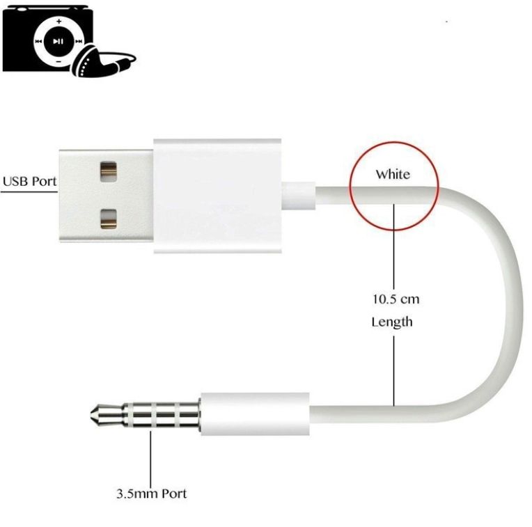 Adaptateur de transfert audio et de charge USB 2.0 avec prise jack 3,5 mm pour iPod Shuffle 3e, 4e, 5e, 6e et 7e génération