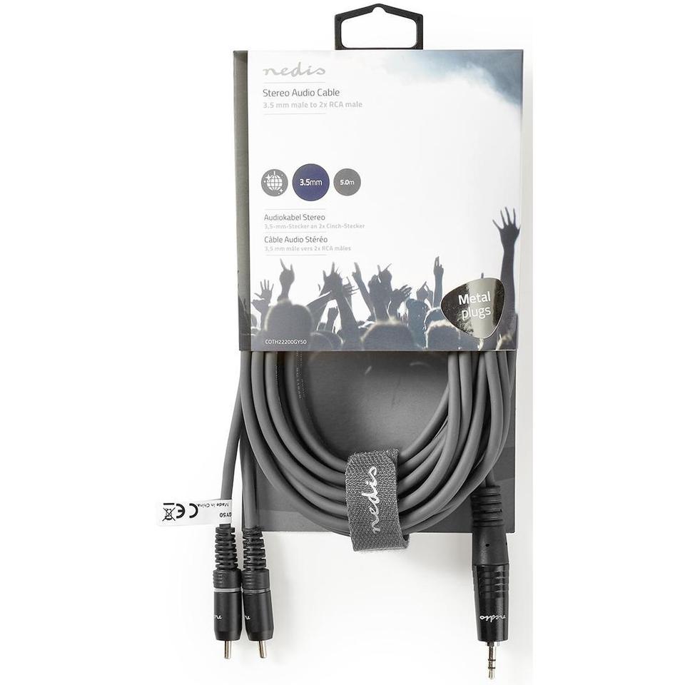 Câble audio stéréo 3,5 mm mâle vers 2x RCA mâle 5 m