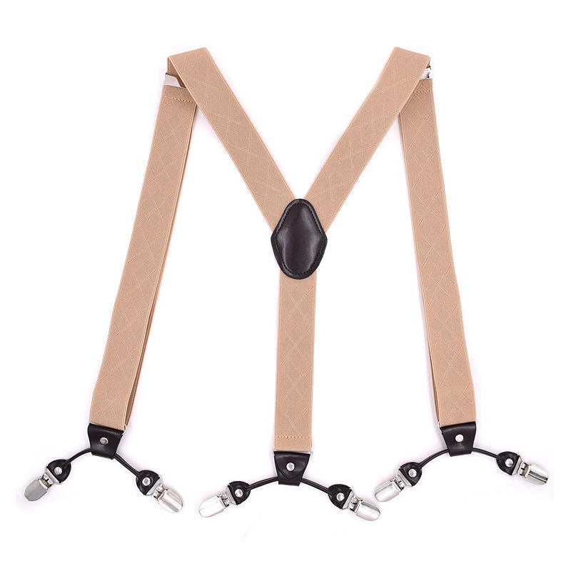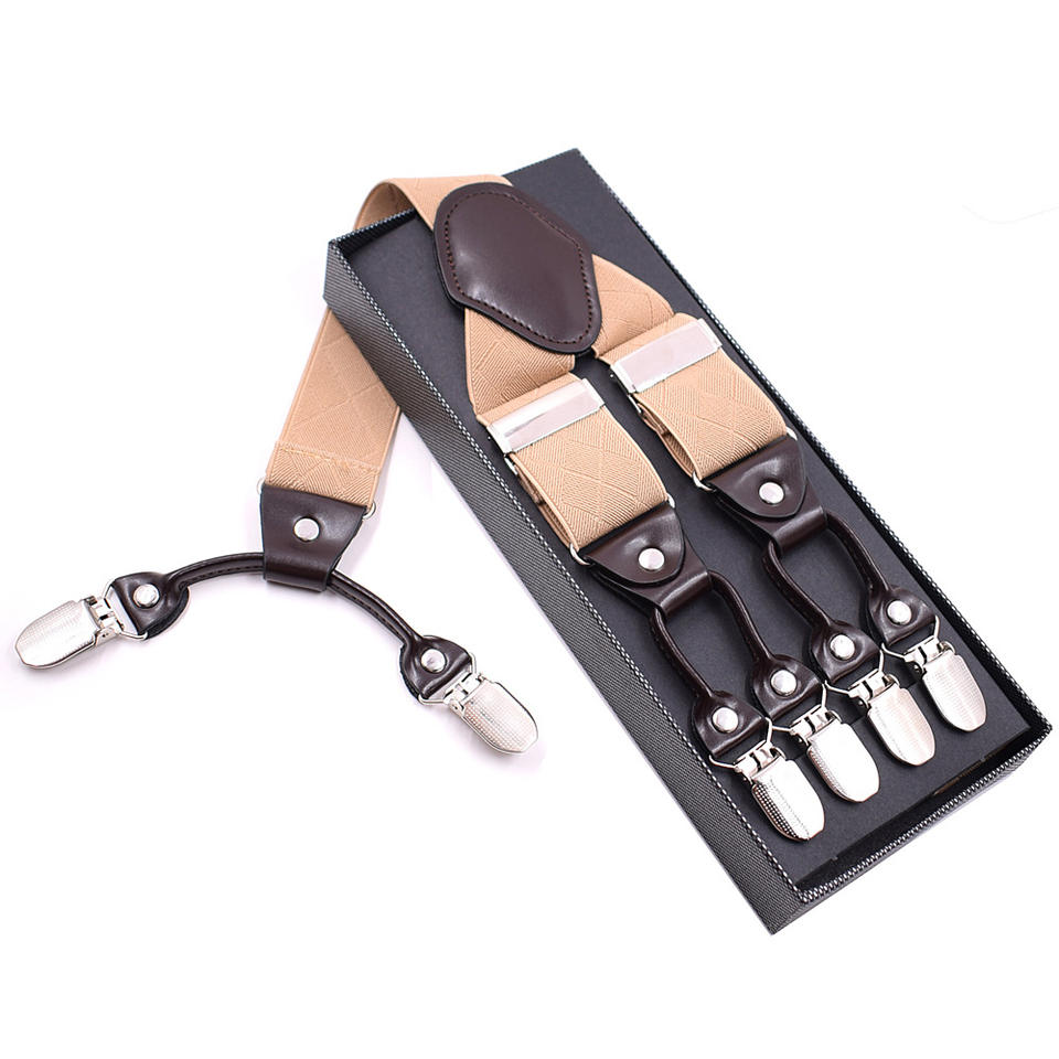 3.5x125cm Fashion Suspenders Leather 6 Clips Brace Male Casual Wedding Party Trousers Strap Husband's Gift With Box