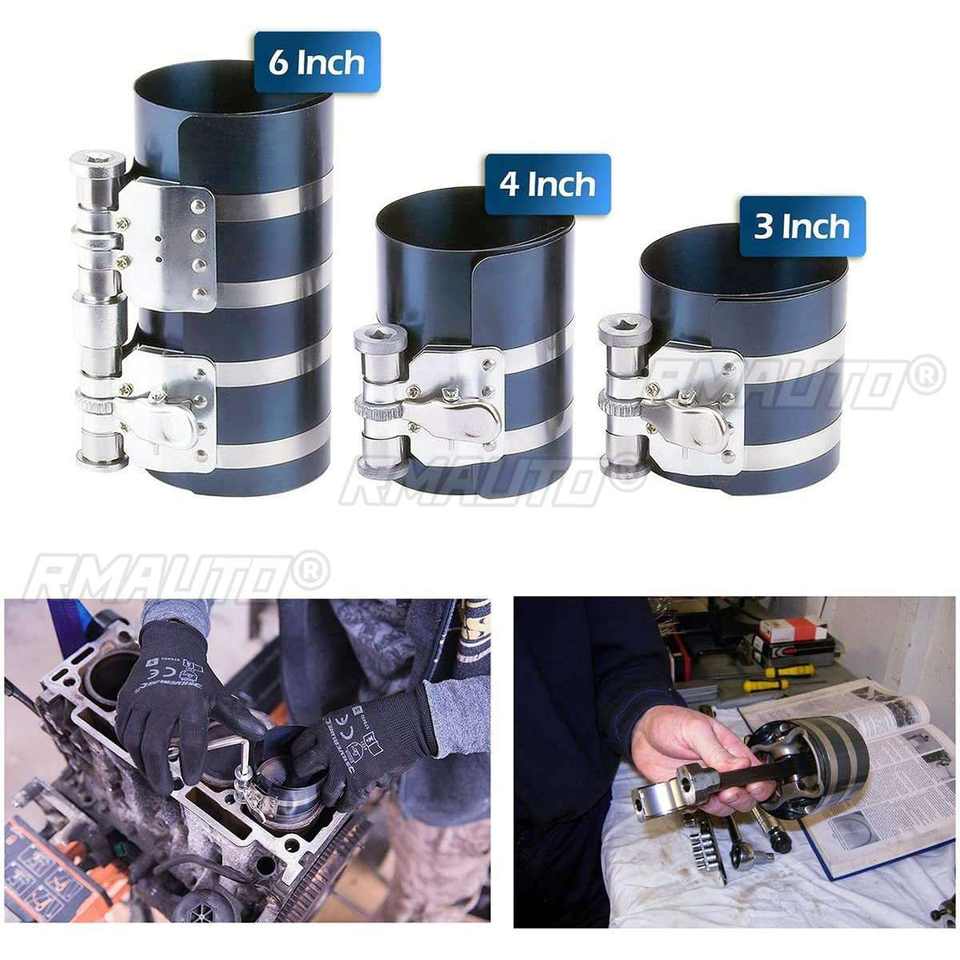 3'' 6'' Piston Ring Compressor 53mm-150mm Engine Ratchet Type Clamp Band Installer Quick Release for 1/4" Drive Key Car Garage