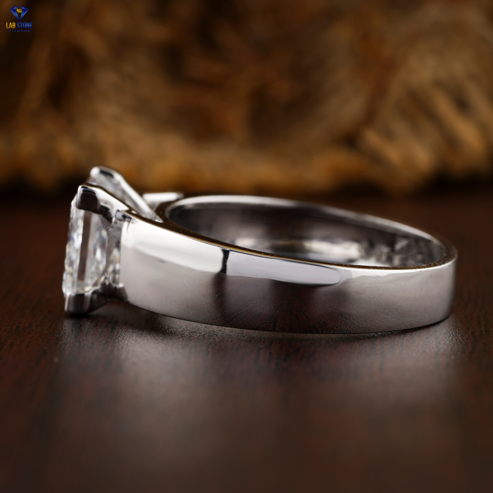 3.62 TDW Princesse Cut Solitaire Diamant Bague Or Blanc V Prong/Chevron Réglage Cvd/Hpht Diamant Lab Pierre