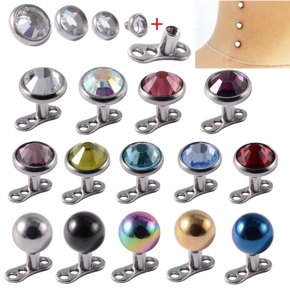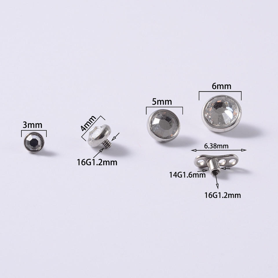 3-6mm Boule en acier inoxydable à fond plat Bijoux de piercing pour le corps Greffe de strass Enterré Ancre cutanée Piercing pour le nez