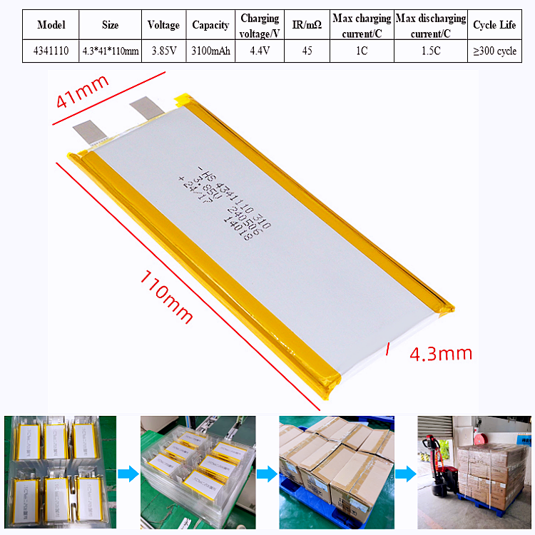 Batterie au lithium-polymère 3.7V 3.8V 4500mAh 5000mAh 6000mAh pour stockage d'énergie, packs de batteries au lithium 4341110, batterie Li-ion LIPO pour ordinateur portable