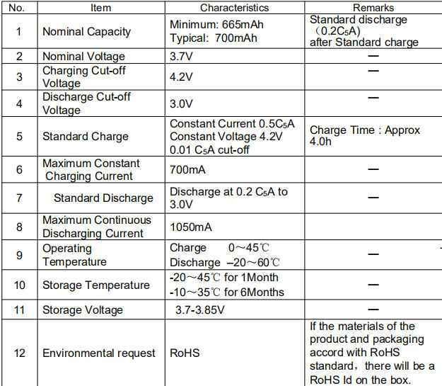 SélectionnerTension nominale: 3.7V