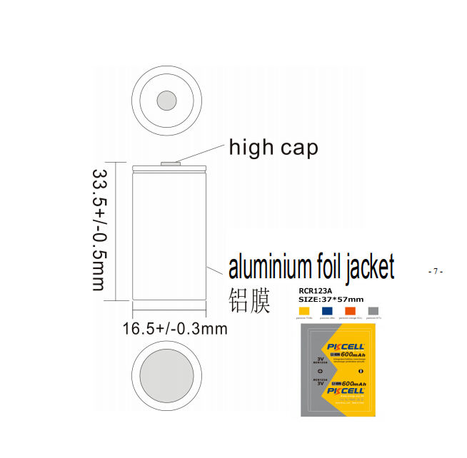 Nom du produit:3.7v lithium RCR123A ICR17335 600mah 700mah