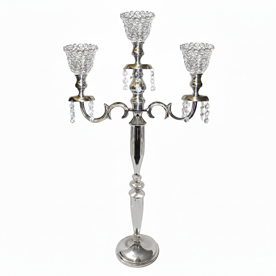 Candélabre à 3 bras avec coupelle en cristal pour décoration de mariage, fête de Noël, candélabre décoratif fait main en finition argentée