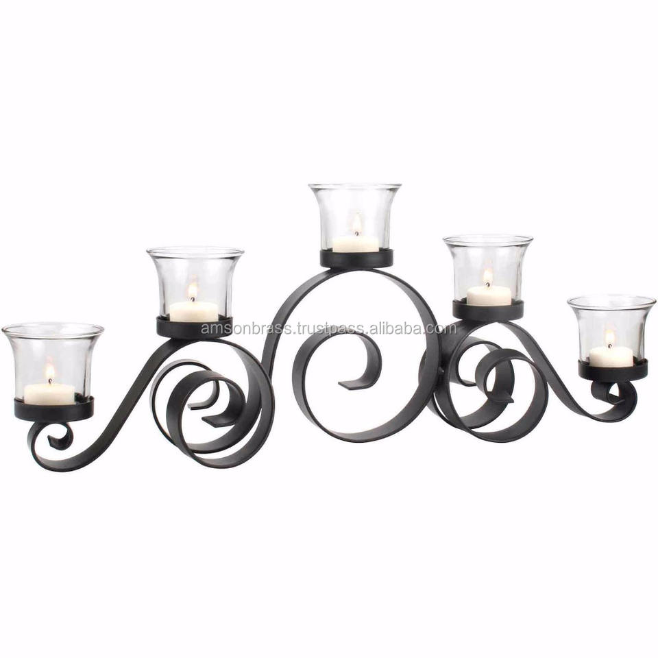 Candélabre en métal à 3 bras pour l'éclairage des bougies Support européen élégant Candélabre en métal doré à 5 bras Décoration de table murale