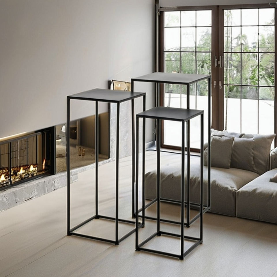 3 tables de chevet pliantes noires en fer avec bois massif et verre, design moderne, meubles de chambre multifonctionnels