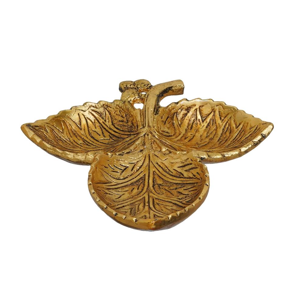 Plateau de service en aluminium moulé avec 3 bols en forme de feuille d'or pour le service de table des aliments et des fruits Plateau en métal