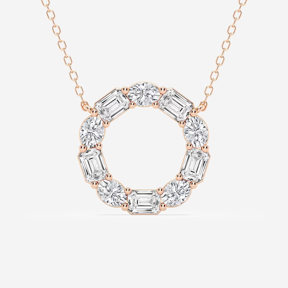 Pendentif Cercle de Mode avec 3 Diamants de Laboratoire Émeraude et Ovales CTW, Chaîne Réglable, Bijou Élégant, Cadeau pour Femme