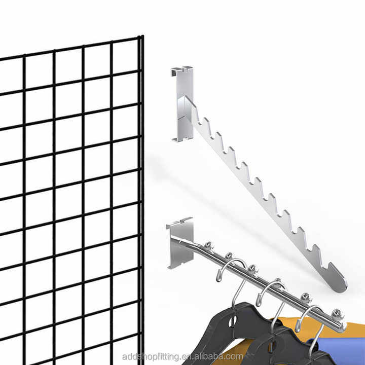 Panneau de grille métallique 3 couleurs bras de présentation de vêtements suspendus pour affichage de magasin