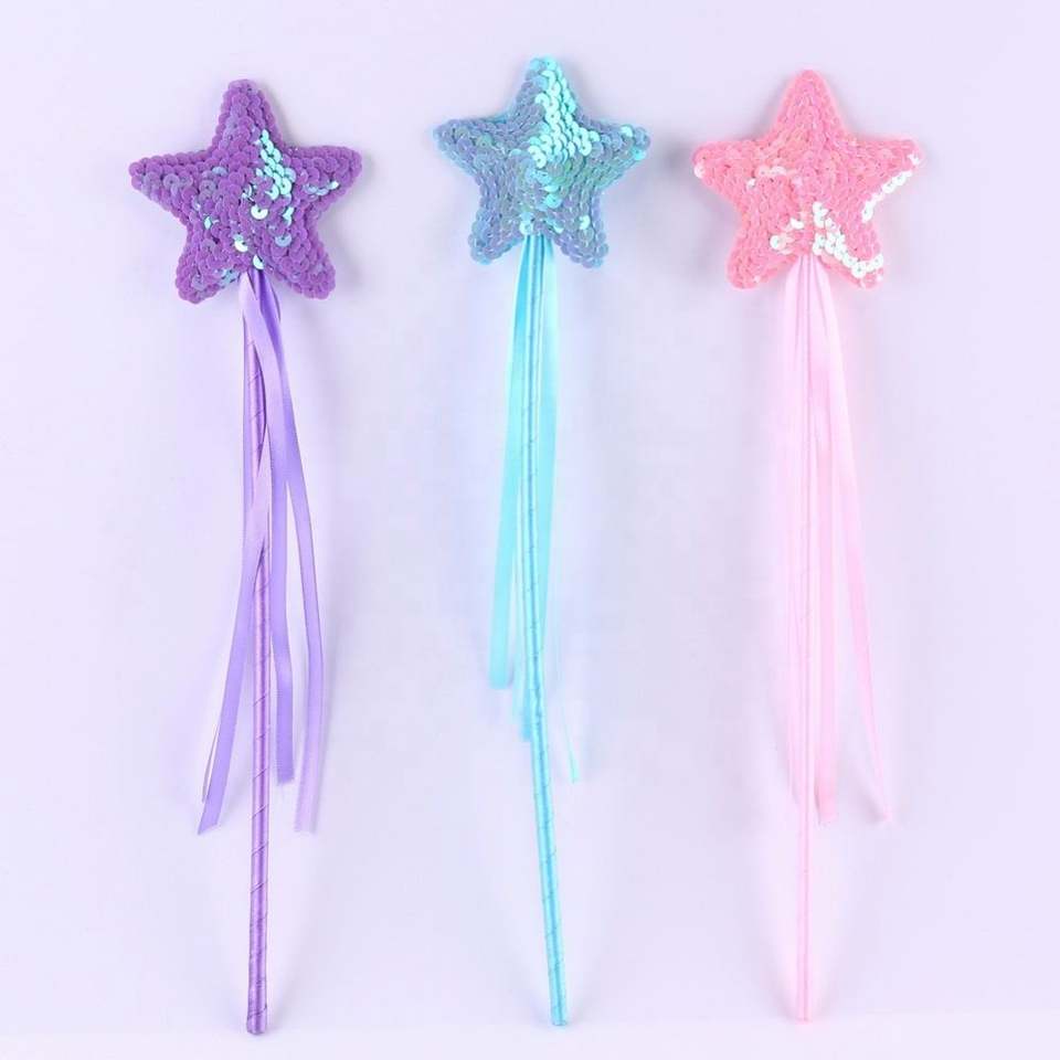 Baguette magique en étoile 3 couleurs pour fille, cadeau de princesse, ange à paillettes, mignonne, étoile à cinq branches, baguette de fée, 1 pièce Costume
