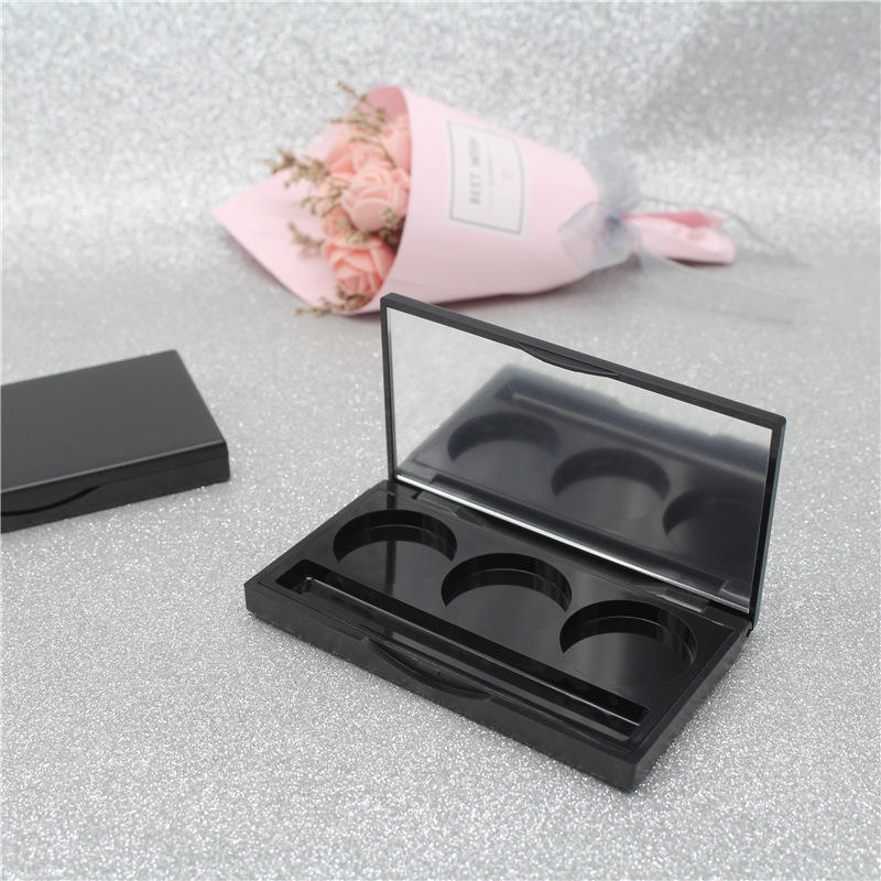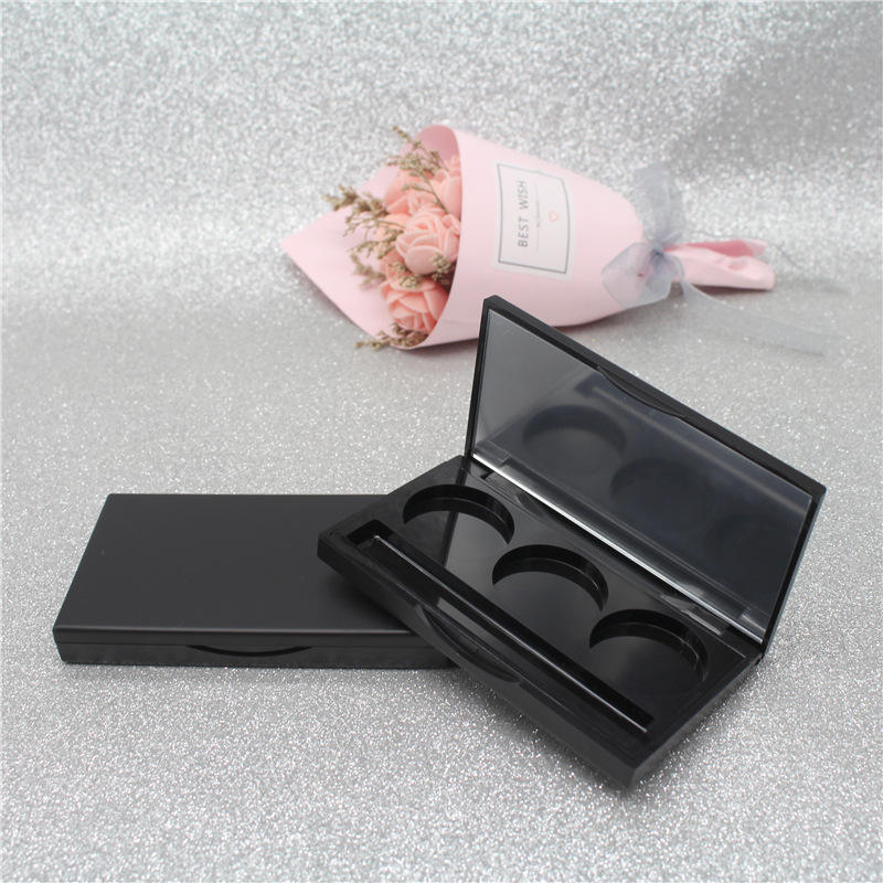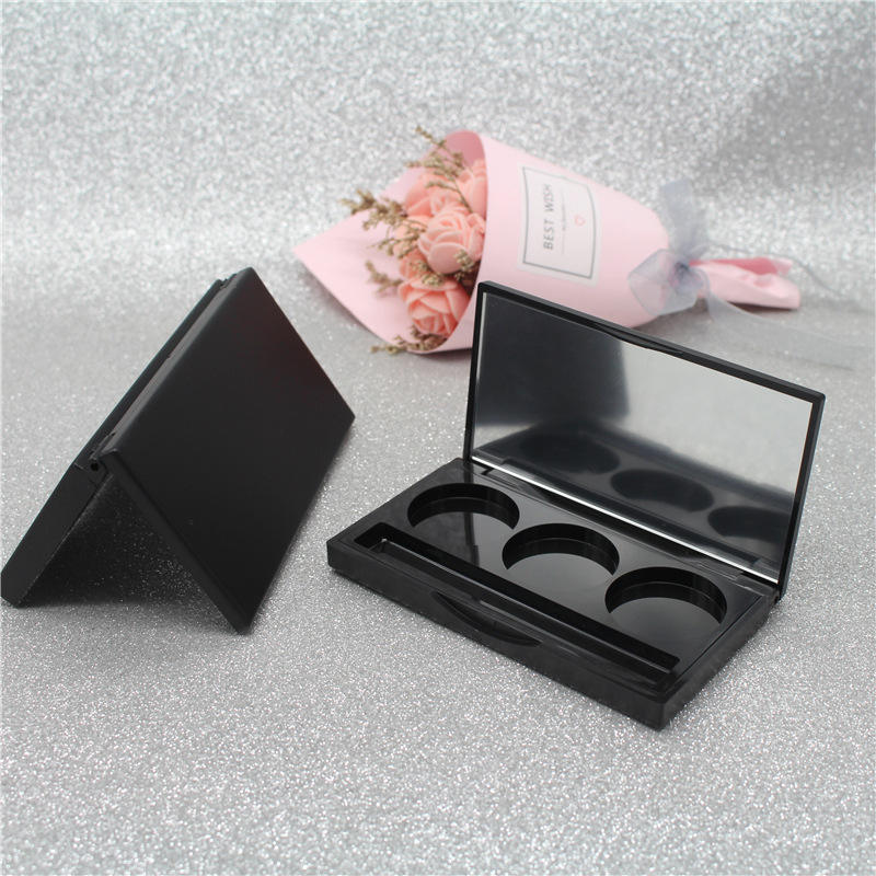 Palette de fards à paupières à 3 compartiments avec miroir, noir mat, 91,6 mm x 51,0 mm, pour l'application de maquillage