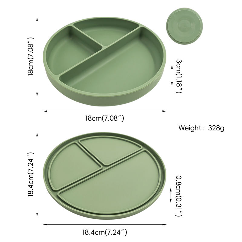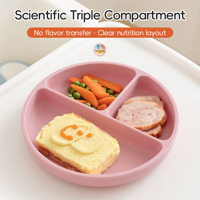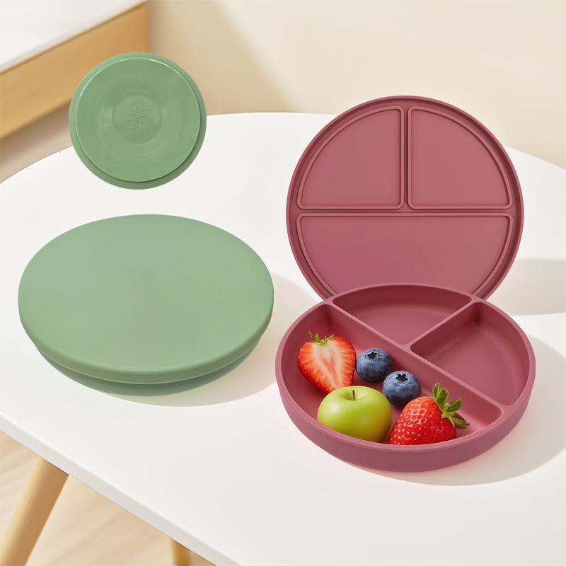 Ensemble de repas pour bébé en silicone à 3 compartiments, couvercle manuel, motif de dessin animé, sans BPA, écologique, assiette à déjeuner multifonctionnelle divisée