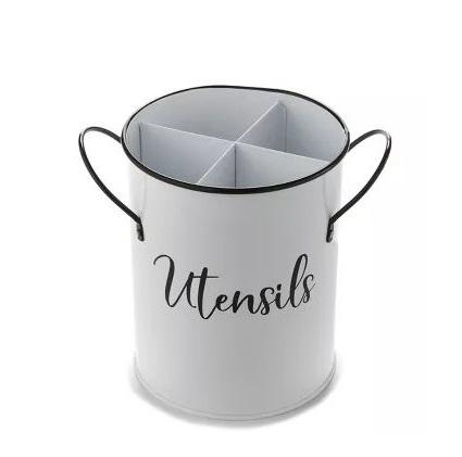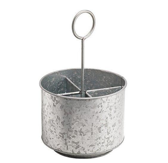 Porte-couverts en métal galvanisé à 3 compartiments avec finition rustique vieillie et poignée supérieure pratique pour une utilisation à la maison et en cuisine