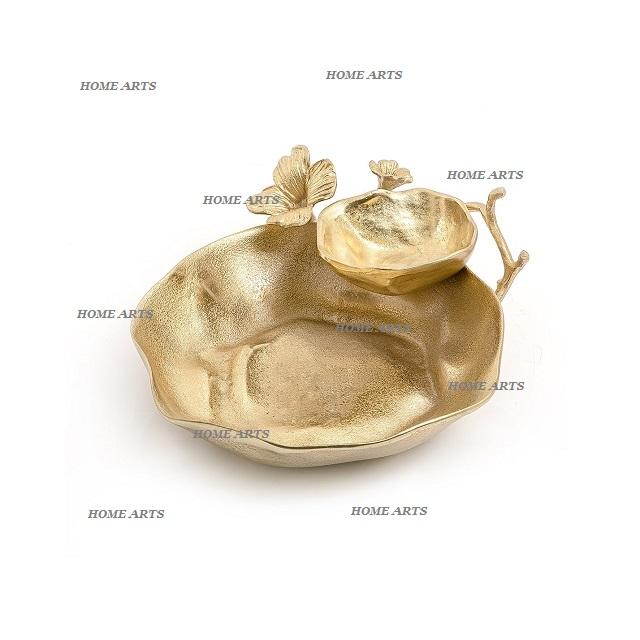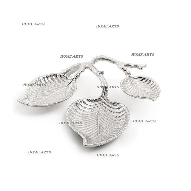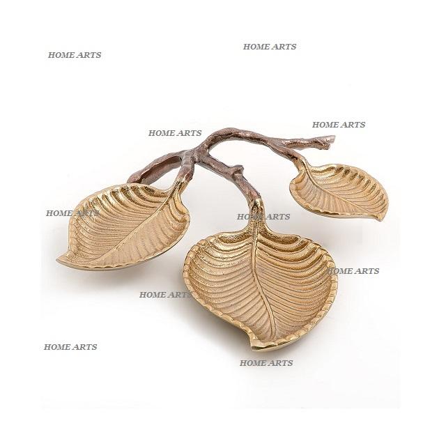 Plat à feuilles en aluminium à 3 compartiments Dernier design Plat à feuilles à dessert couleur or du fabricant en Inde