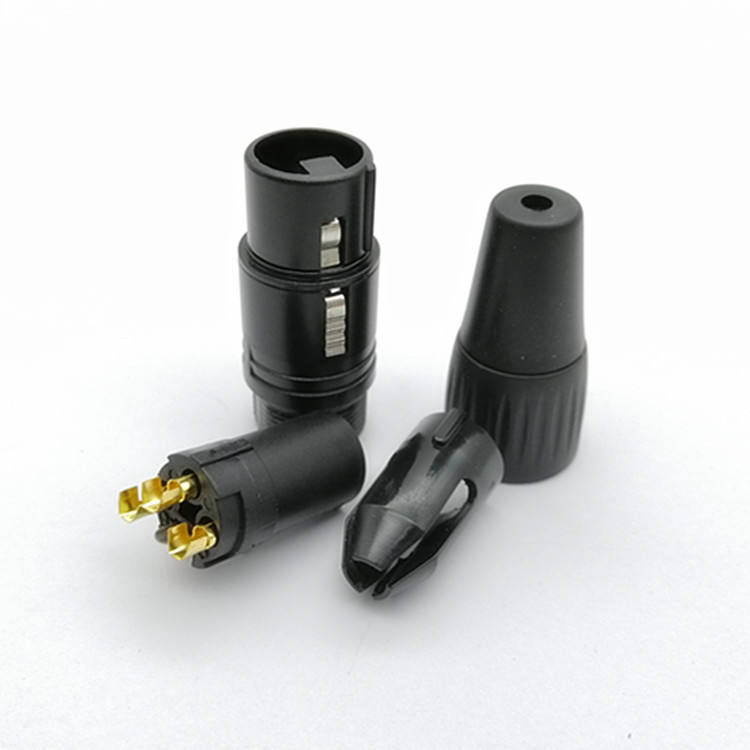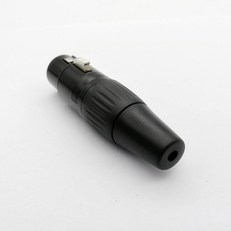 Connecteur audio XLR femelle 3 broches Cannon, équilibré, noir, avec âme en cuivre et ornement plaqué or, haute qualité