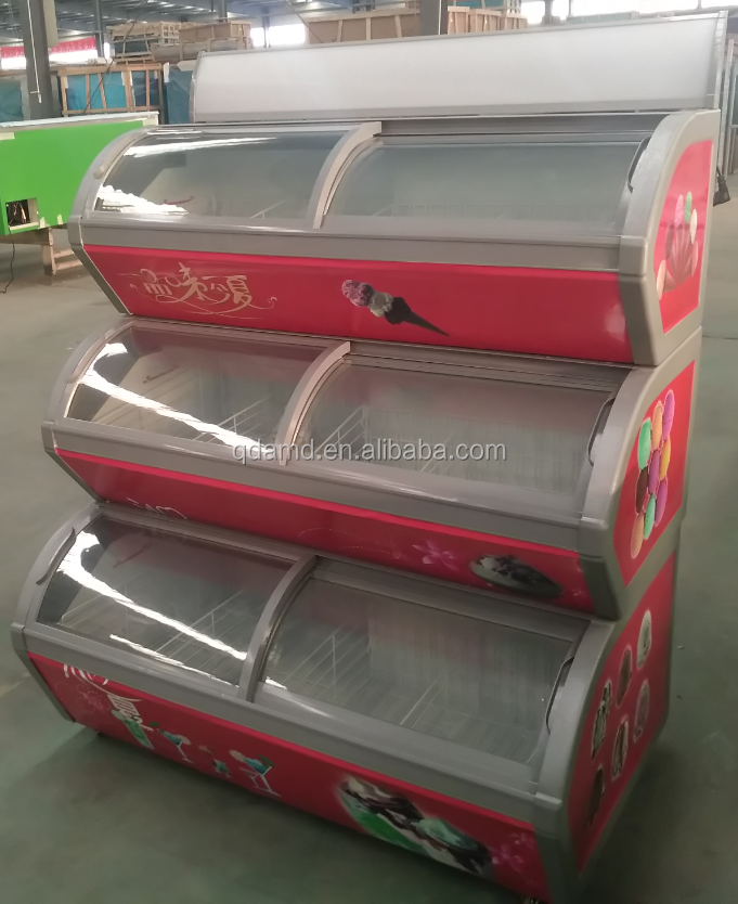 Vitrine de congélateur à crème glacée modulaire à 3 étages avec boîte à lumière et auvent