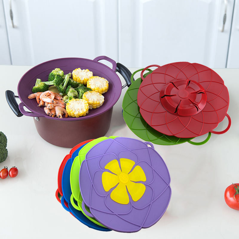 3 modèles d'outils de cuisine sans BPA, couvercle en silicone en forme de fleur, anti-débordement, couvercle de casserole anti-fuite