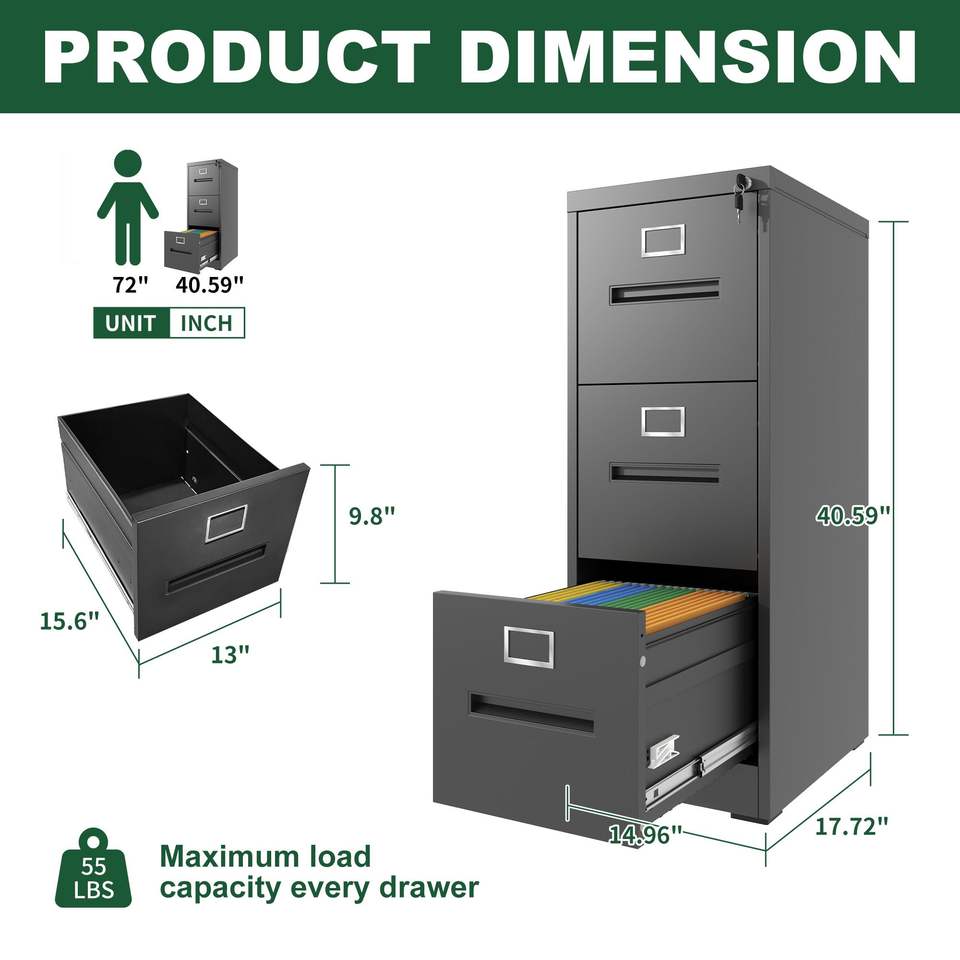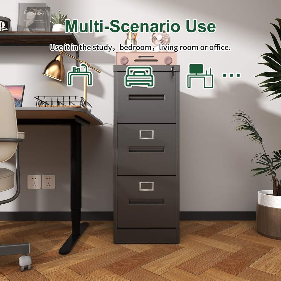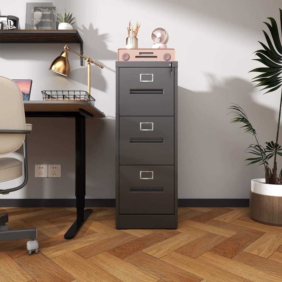 Armoire de classement verticale en métal à 3 tiroirs avec serrure, pour bureau et domicile, format A4/Legal/Lettre, étroite, assemblée, avec serrure sécurisée