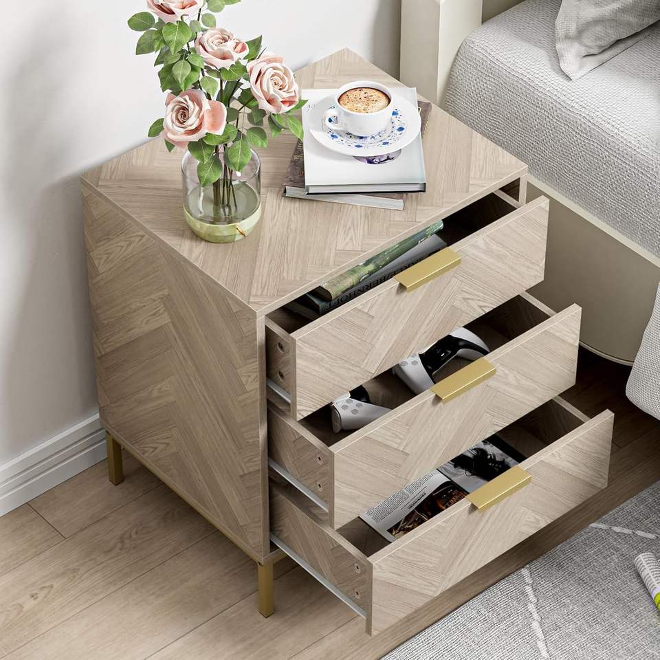 Table de chevet à 3 tiroirs, table d'appoint gain de place pour la chambre à coucher, table de chevet moderne en bois avec rangement, table de chevet de luxe