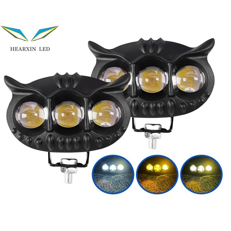 Lampe LED Hibou à 3 yeux Projecteurs de tir à longue portée haute luminosité Jaune Blanc Phare de moto Universel pour voiture