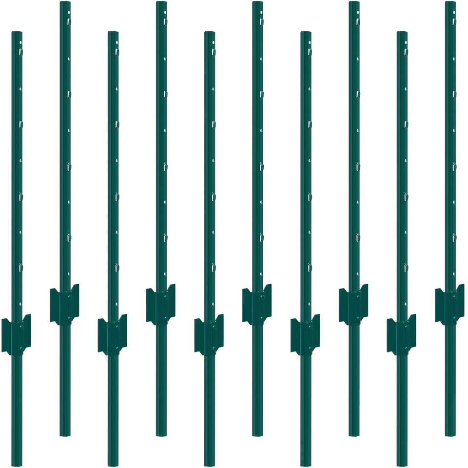 3 Feet Heavy-Duty Green Metal Fence Posts 10-Pack T-Post for Trellis & Gates