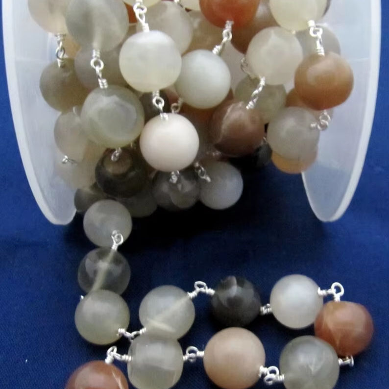 Chaîne de chapelet perlé de 7mm en pierre de lune naturelle multi de 3 pieds