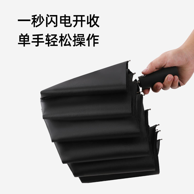 Parapluie pliant automatique à 3 sections avec logo personnalisé, poignée en plastique, revêtement noir, 12 baleines en acier, couleur personnalisable