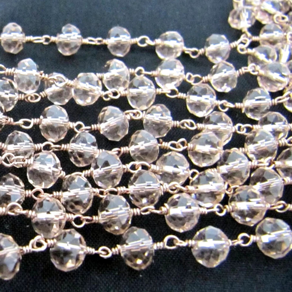 Chaîne de chapelet à perles en quartz rose naturel de 3 pieds enroulée de fil à facettes Aati 6mm Hydro Quartz