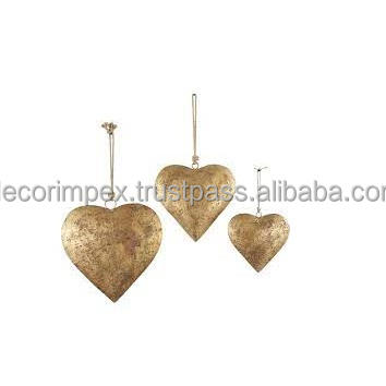 Ensemble de 3 cœurs dorés, taille personnalisée, ornement suspendu en or, ornements en fer faits à la main, luxe, décoration de Noël pour la façade de la maison