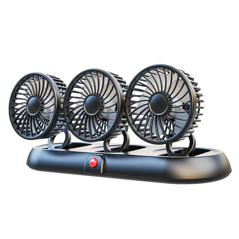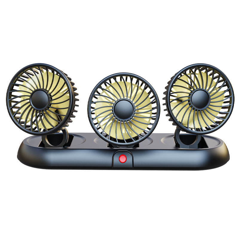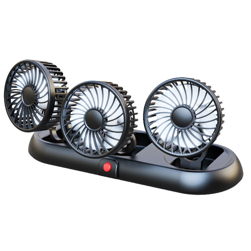 Ventilateur de refroidissement intérieur de voiture à 3 têtes, 5V/12V/24V, pliable, mini USB, 3 vitesses, pales de 4 pouces en PP, gain de place pour voitures