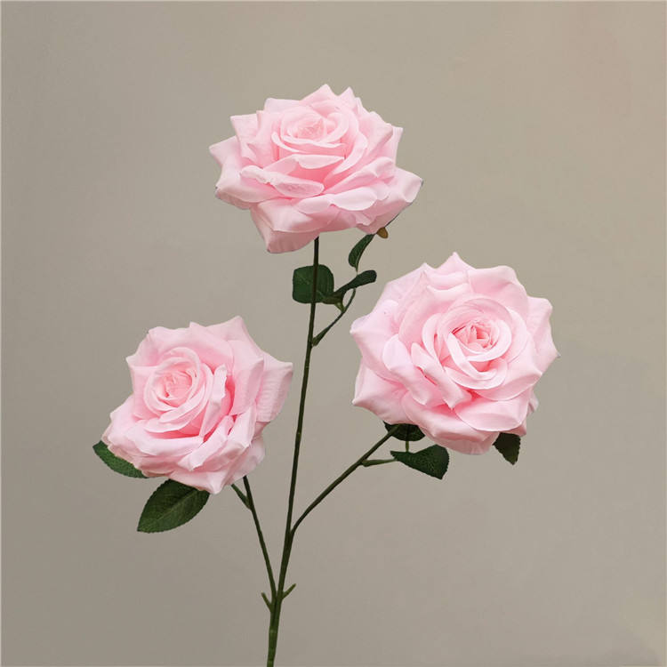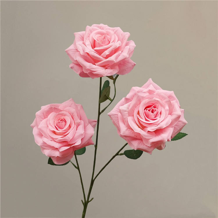 3 têtes de rose artificielle fleur longue tige soie fleur arrangement floral décor de fête de mariage