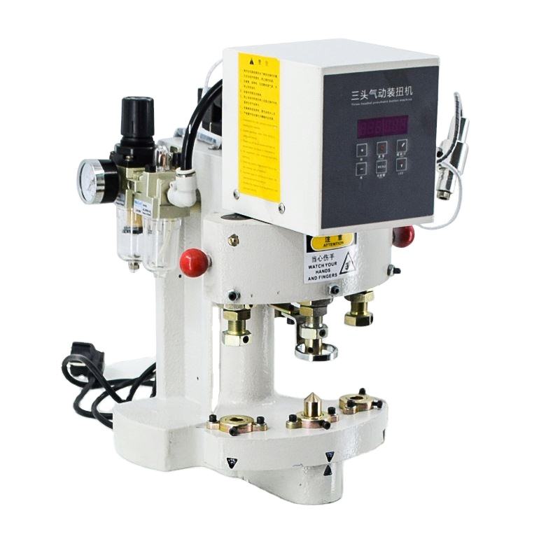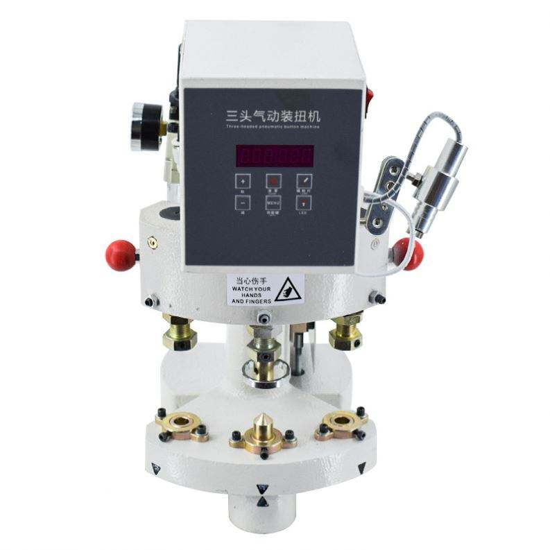 Machine de fabrication de boutons pneumatiques à 3 têtes avec fonction de poinçonnage pour la production de vêtements