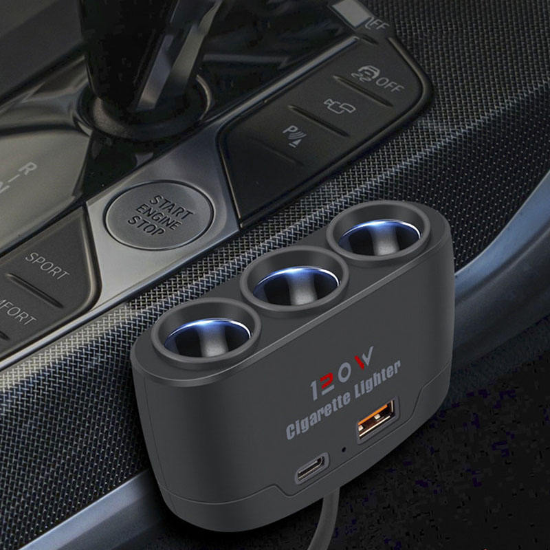Adaptateur de chargeur de voiture 3-en-1, allume-cigare, multiprise, répartiteur de prise cigare, double USB, distributeur d'alimentation, pièces intérieures